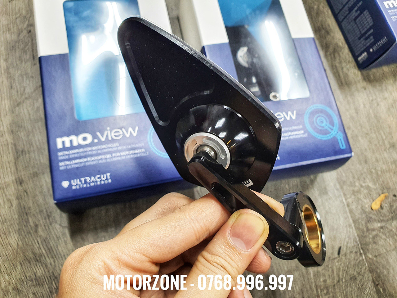 Thân gương được gia công CNC từ nhôm nguyên khối, xử lý bề mặt anodized mờ chống trầy xước, vừa nhẹ vừa cực kỳ bền bỉ. Mặt gương bằng chất liệu nhôm chống lóa, cho tầm nhìn rộng và rõ nét hơn so với gương thông thường, giúp đảm bảo an toàn khi di chuyển.